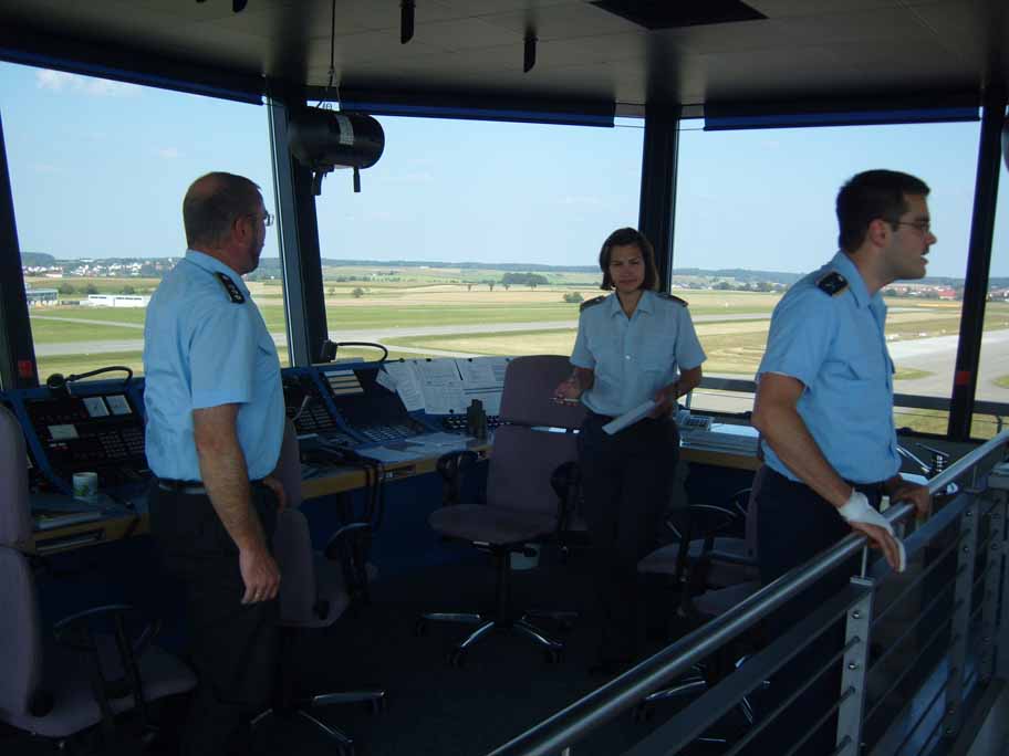 Dort gewährte man uns detaillierte Einblicke in das Tagesgeschäft der Flugsicherung auf dem Tower. Dabei war u.a. sehr interessant, wie die Zusammenarbeit der militärischen mit der zivilen Luftraumüberwachung funktioniert und wie weit die Radaranlagen ins Land „sehen“ können.