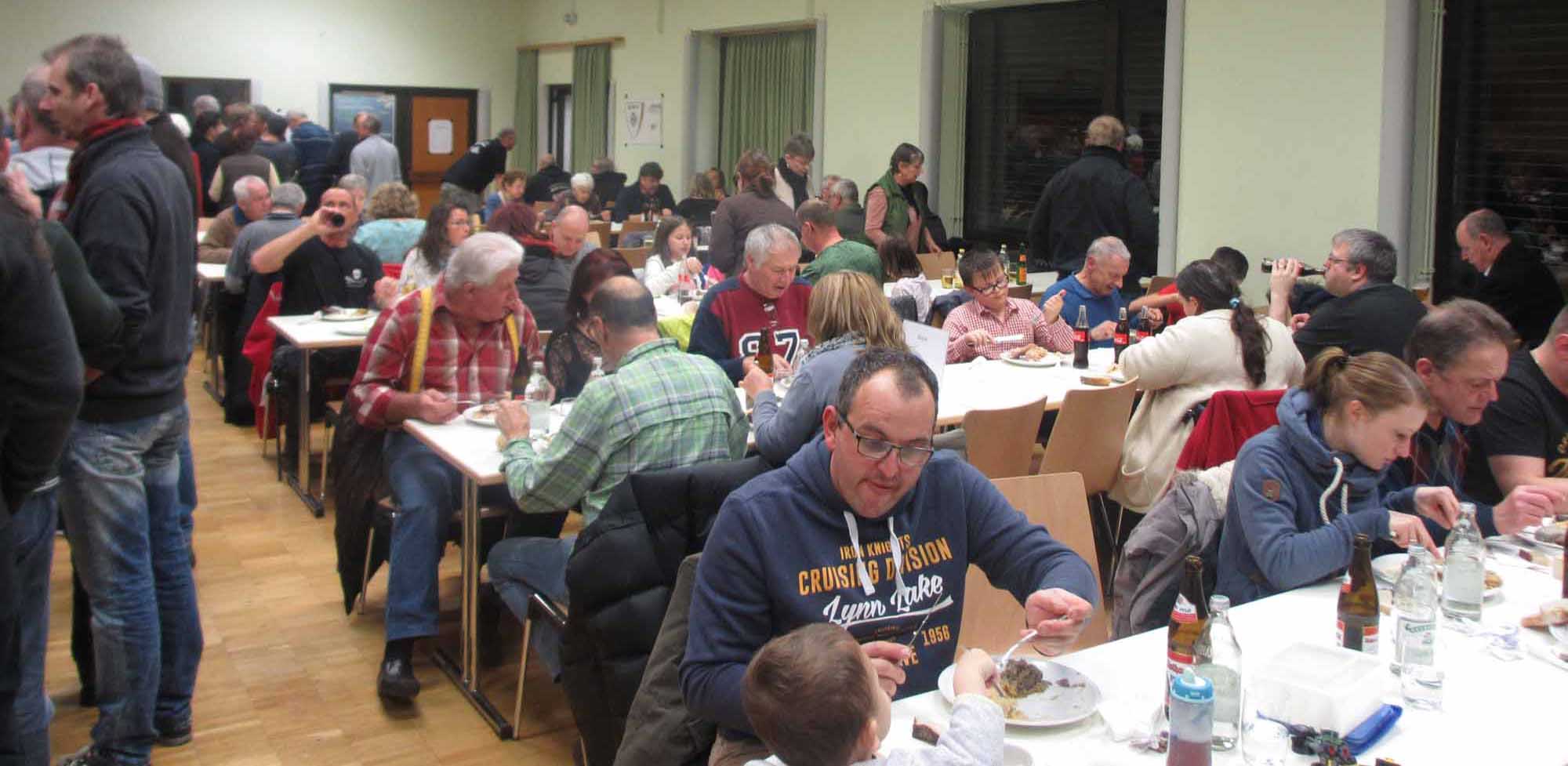Ab 18.00 Uhr bilden sich jedes Jahr lange Schlangen vor der Essenausgabe, denn die Qualität der angebotenen Schlachtplatten ist legendär.